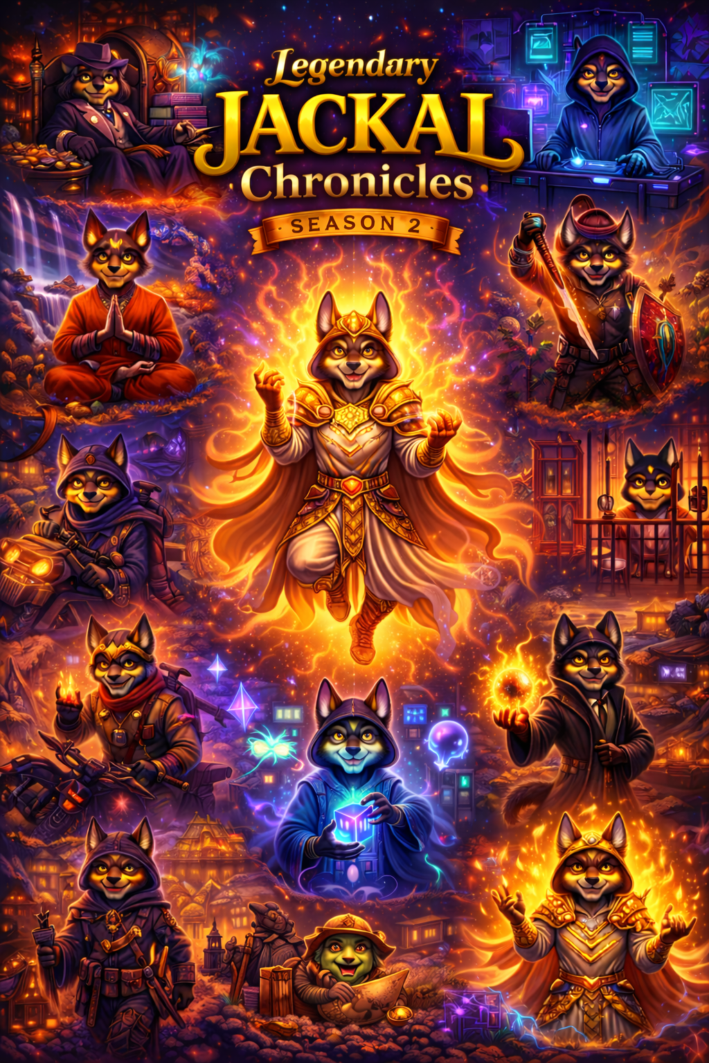 A bold 1/1 NFT saga where the Legendary Jackal evolves through power, chaos, wisdom, tech, and dominance. Season 2 dives deeper into memes, money, and myth—each piece a standalone legend, together forming an unstoppable on-chain empire.