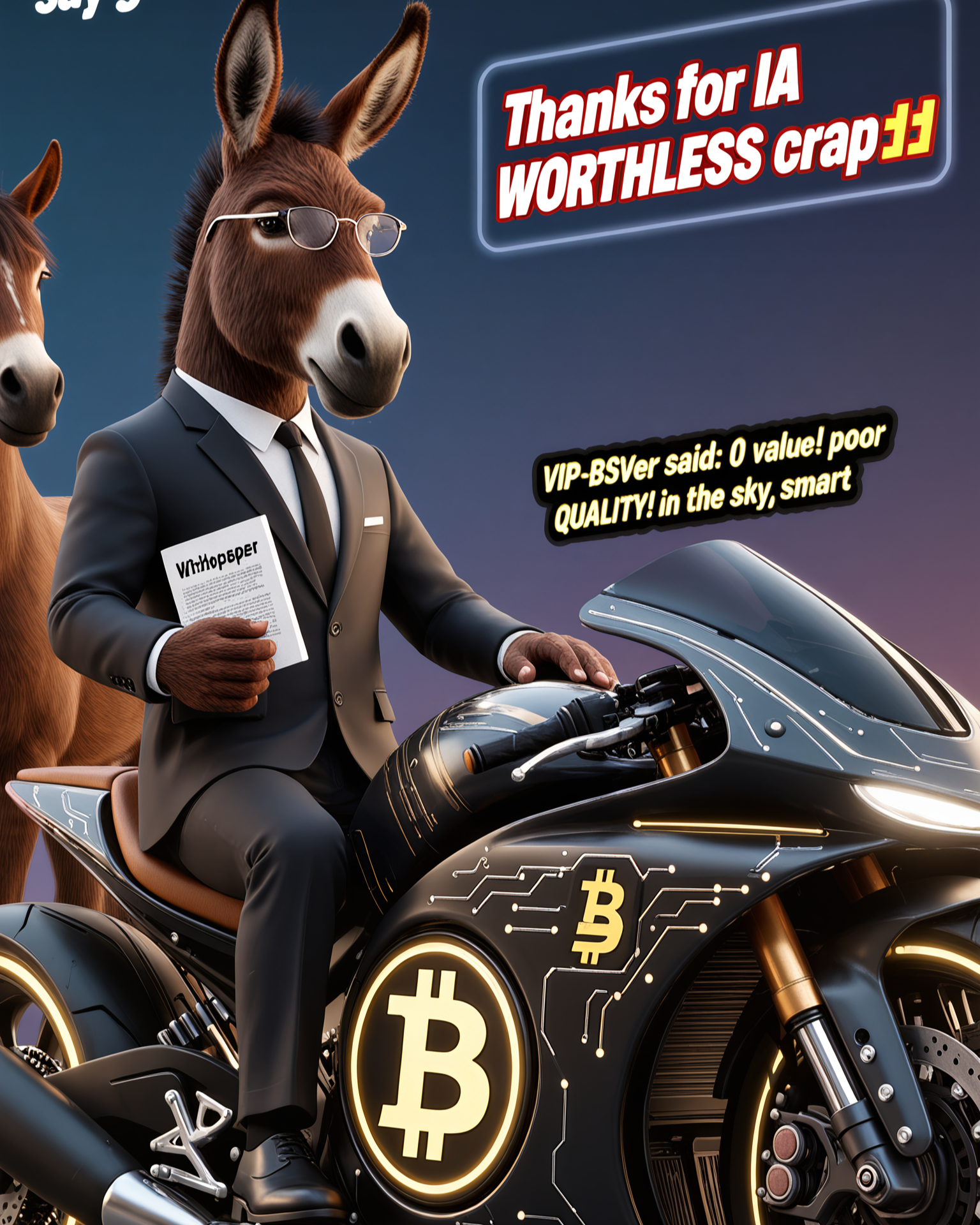*Welcome to my ©2C "Creator to Collector" auction Stupid Things2009* IAAI- bitcoinSV donkey POWer 🤪things on current topics related to BSV.